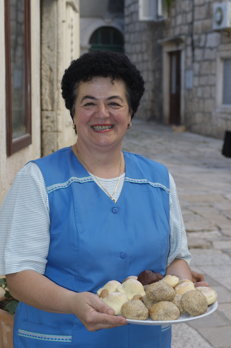 CROATIE Ile de Korcula Vendeuse de gâteaux à Korcula-ville