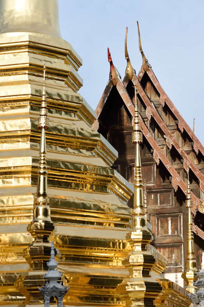 Chiang Mai est la seconde ville de la Thaïlande. Elle s’étend dans une vallée verdoyante au cœur du Lan Na, un ancien royaume nourri d’influences birmanes et laotiennes, qui a doté la ville de nombreux temples où s’expriment le meilleur de l’architecture et des arts thaïes. Tel le wat Chet Yod, un temple du XVème s. dont les murs sont sculptés de superbes bas-reliefs de divinités hindoues. Sous son banian sacré, des fidèles prient devant des autels surchargés de statuettes de serpent, l’animal totémique du temple… Après en avoir visité plusieurs, vous comprendrez le rôle important que tient le bouddhisme dans la société thaïlandaise, et vous aurez vu l’incroyable diversité dans leur décoration, parfois kitsch, souvent baroque, toujours fastueuse. Le soir, après une halte dans un salon de massage pour harmoniser vos chakras et soulager vos courbatures, faites un tour au centre-ville pour goûter la « street-food » locale, telle que la soupe Tom Yum à la citronnelle (assez épicée), le pad thaï (nouilles de riz sautées aux crevettes) ou un curry au lait de coco…